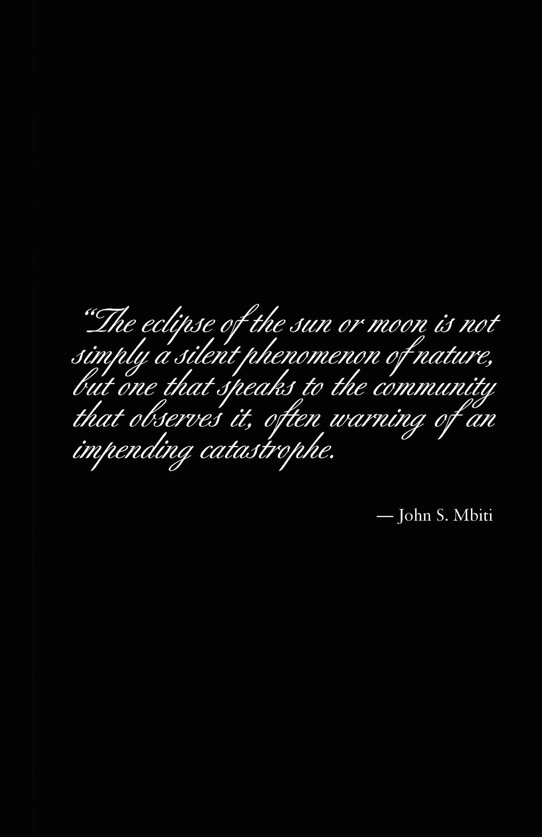 The older woman smiled. “Well, the Chinese thought it was a dragon. But nothing’s being swallowed up, really. What it is, is the moon passing ‘tween the sun and the earth at just the right time. That black hole that you see through the telescope is the moon blocking the sun. You know, the sun has been doing that since before you was born. Since before I was born. It does it every so often.”